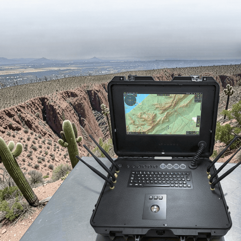 A Ground Control Station (GCS) is a centralized hub used to monitor, command, and control unmanned vehicles, allowing operators to receive data and make real-time decisions in the field. GCS-001 is a portable rugged control suitcase that integrates an Intel-based computing platform, a 17-inch class Full HD display, and an integrated keyboard and pointing device. It is built for mission software, live video, and payload peripherals through rich I/O such as USB and HDMI, helping operators deploy quickly and maintain a responsive control loop for UAVs, UGVs, and other unmanned systems.